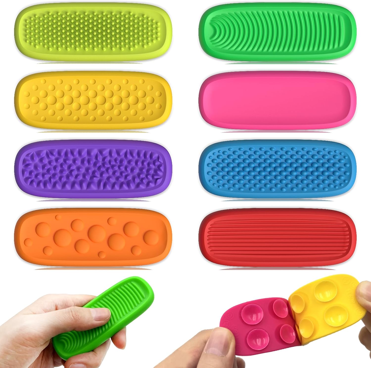 This set includes soft, durable suction fidget bars along with smooth worry stones that provide a soothing tactile experience. Perfect for kids, students, office workers, and individuals with ADHD, Autism, or Sensory Processing Needs.